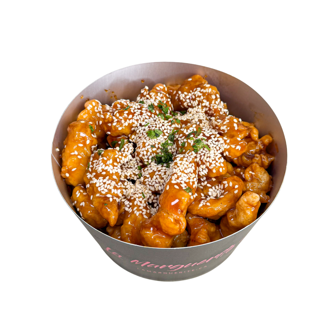 Sweet and sticky crispy chicken tossed with toasted sesames and a sweet sauce